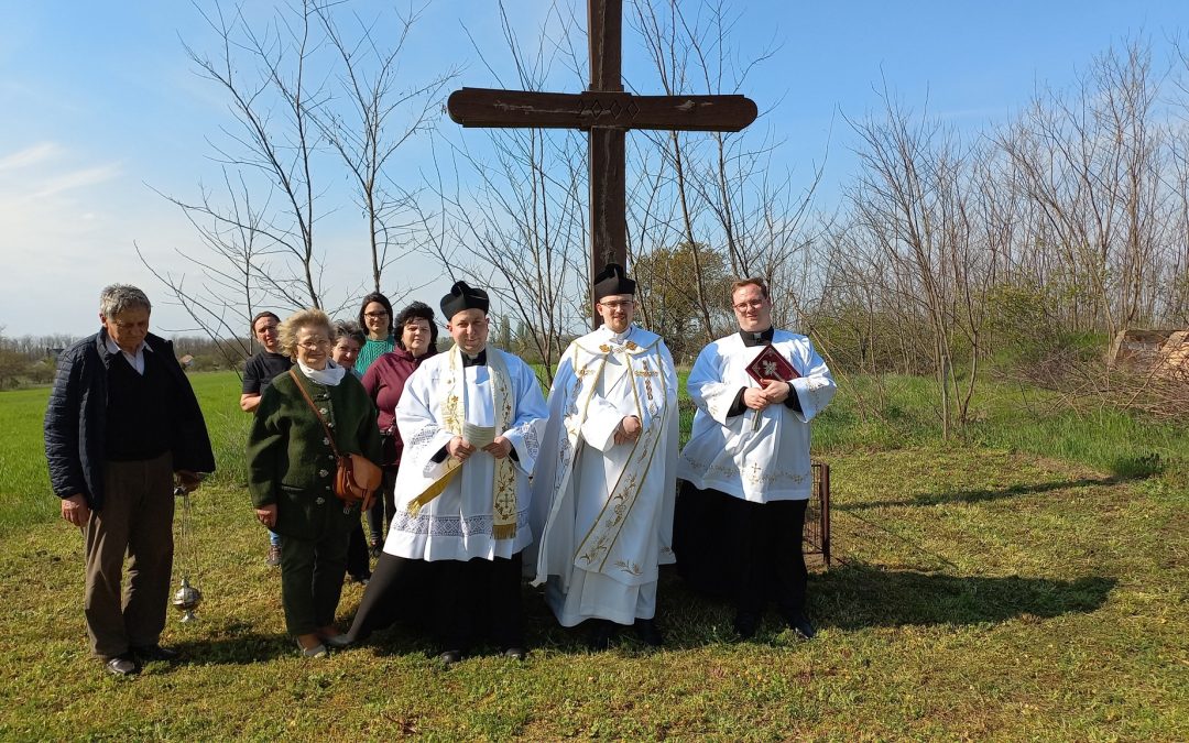 A kisbéri határban László Atya vezetésével Ádám és Richárd papnövendékek közreműködésével könyörögtünk a jó termésért.