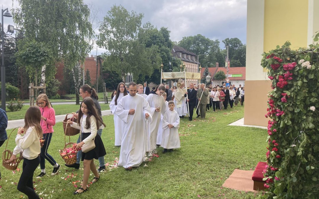 Hagyományainkat őrizve zöld ágakból elkészültek a sátrak, szorgos kezek virággal díszítették a kis oltárok környékét. A kislányok kosárból szirmokat hintettek és a baldachin alatt a plébános az Oltáriszentséggel elindult a templom körül.